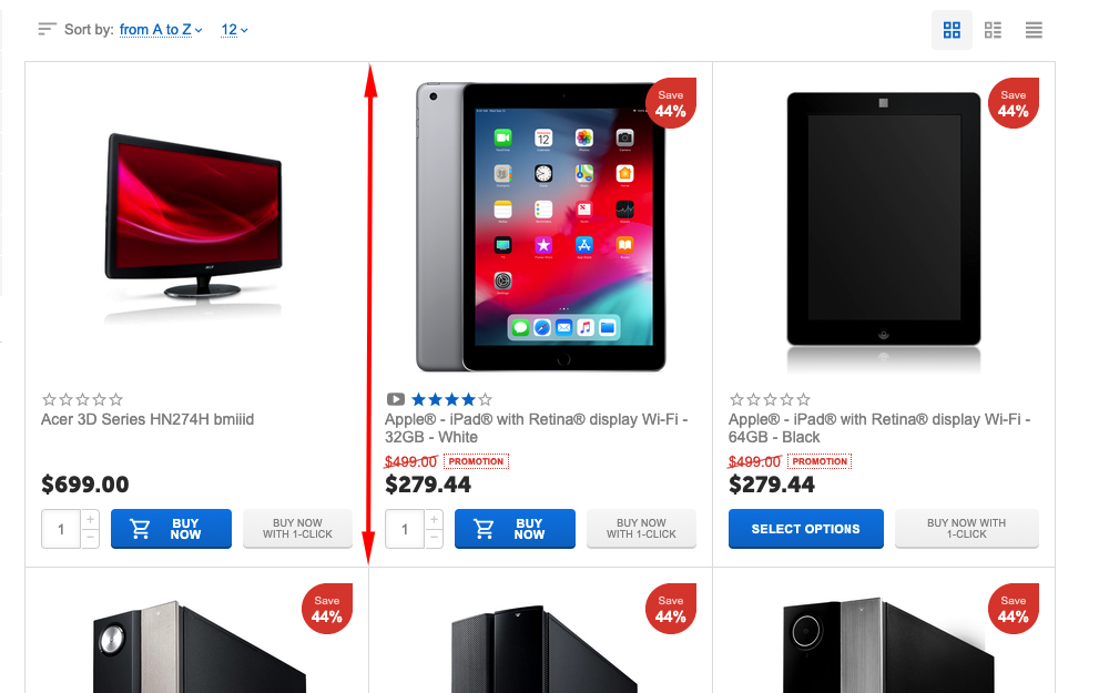 [!] Fixed. When displaying the last product in the list (if the products grid was not completely filled by products, an odd number), the cell width was distorted;